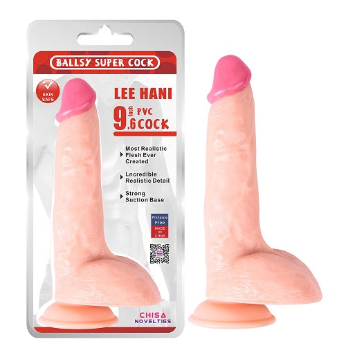 Dildo extra grande realista y adherible Lee Hani 9.6" Dildo, 24 cm, compatible con arnés.