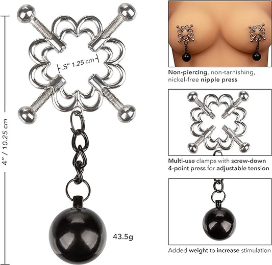 Pezoneras fetiche de 4 puntos ajustables, Nipple Grips 4-NP Press, Calexotics