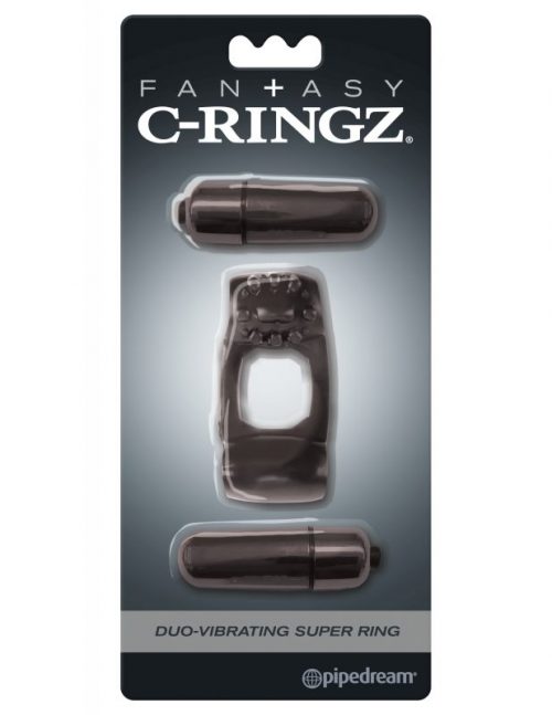 Súper anillo vibrador doble, estimula clítoris y testículos, Fantasy C-Ringz Duo-Vibrating Super Ring negro